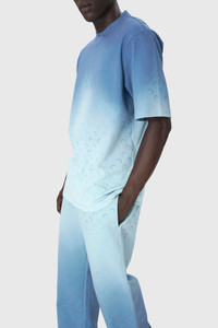 - FADED MOON artwork printed all over - Elastic waistband with drawstrings on interior side - Two pockets with bartacks - Elastic pant hem with stopper Materials Moon Faded Fleece All the cotton Marine Serre sources for Borderline is GOTS-certified — this world-leading textile processing standard chiming with the house’s own well-known commitment to protecting the planet. In terms of the silhouettes across these ranges, we wanted to offer a wide range of everyday styles that are directly inspired by the world of sportswear. Our Moon Logo Jersey lines come in a range of traditional colours (white, black and grey, but in most cases lilac too) spun out across t-shirts, tanks and dresses, as well as underwear. These garments are finished in the classic way familiar from sportwear garments, with our Moon Logo in raised embroidery just below the neckline. Some of the Recycled Cotton Jerseys (lilac and grey) feature our MS Sport logo — a print moon with Marine Serre embroidered above, and we have also expanded our palette with seasonal colours such as red and blue, bearing a Gradient All Over Moon print. 100% COTTON