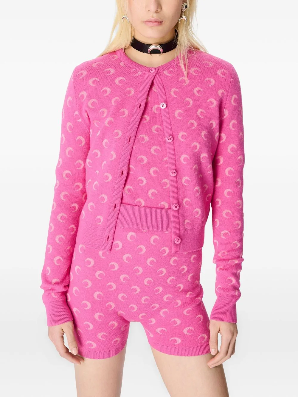 moon-jacquard knitted shorts Highlights - Pink - Moon-logo jacquard - Knitted - Ribbed trims Made in Italy Composition Viscose 50%, Virgin Wool 50% Washing instructions Read Manufacturer Guidelines