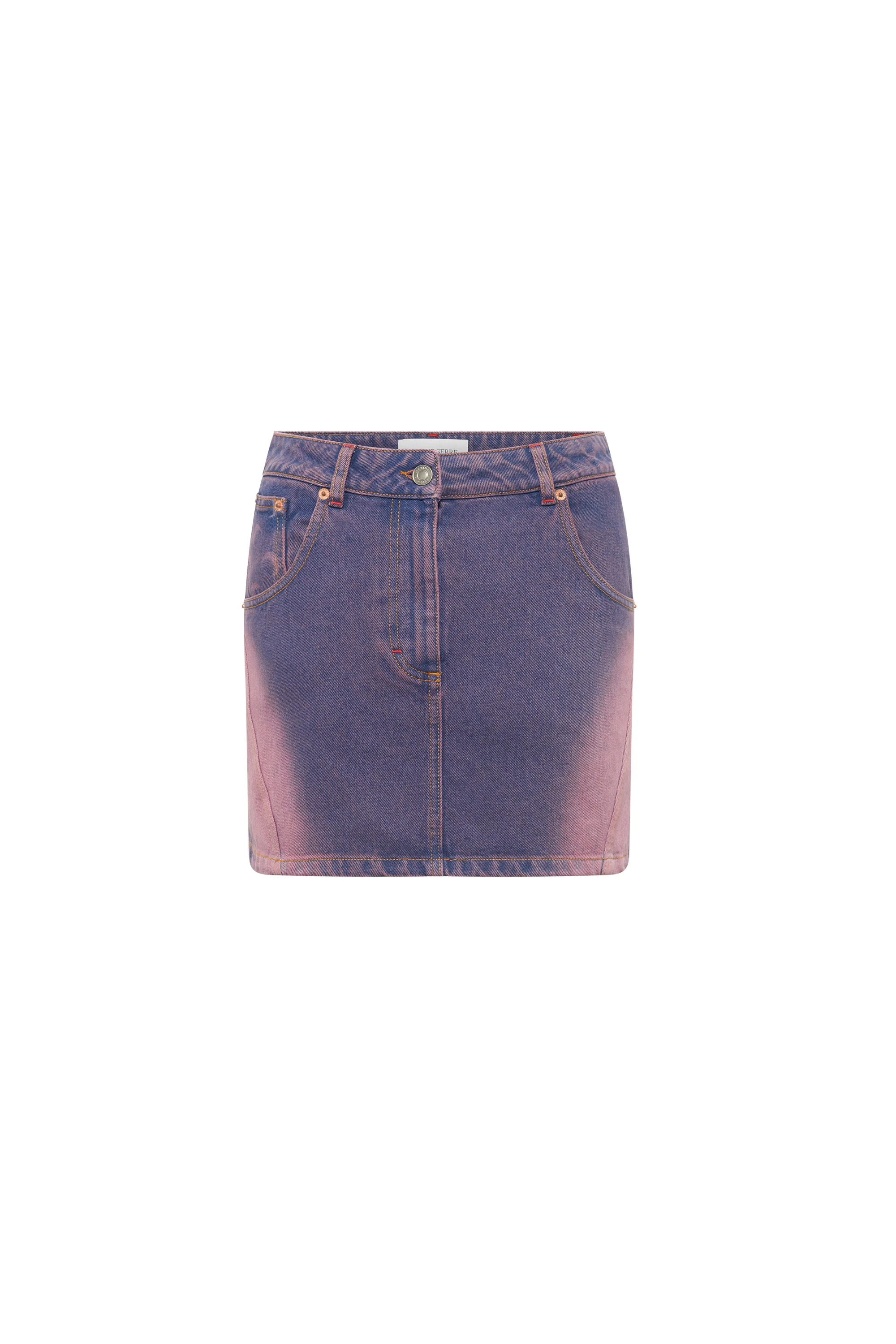 - Five pockets - Zipped closure with a shank button - Belt loops - Embroidery on left back pocket - Branded jacron woven on back waistband - Signature Moon laser printed all over on back panel - Overwashed airbrushed detail on side seams - Logo engraved on button Materials Moon Laser Denim Lavender The appeal of our All Over Moon denim never wanes, with this classic fabric returning again and again. Made from a GOTS-certified organic cotton canvas, our indigo denim is stonewashed to produce a light blue shade, plus two exciting new variants: sand and purple blue; the latter is also treated with a pigment spray to achieve a really vibrant gradient effect that fades to a paler purple at the sides of the garment. After stonewashing, the All Over Moon is laser-printed onto the pieces, its placement differing for each model. While some garments are entirely covered with the print, on others it’s more discreet, popping up on a pocket or waistband. The men's and women's pieces revisit democratic denim archetypes, albeit given a Marine Serre spin: there are workwear-style jackets and bowling shirts, but also fitted dresses and skirts. Main Fabric: % Cotton - Lining: 100% Cotton