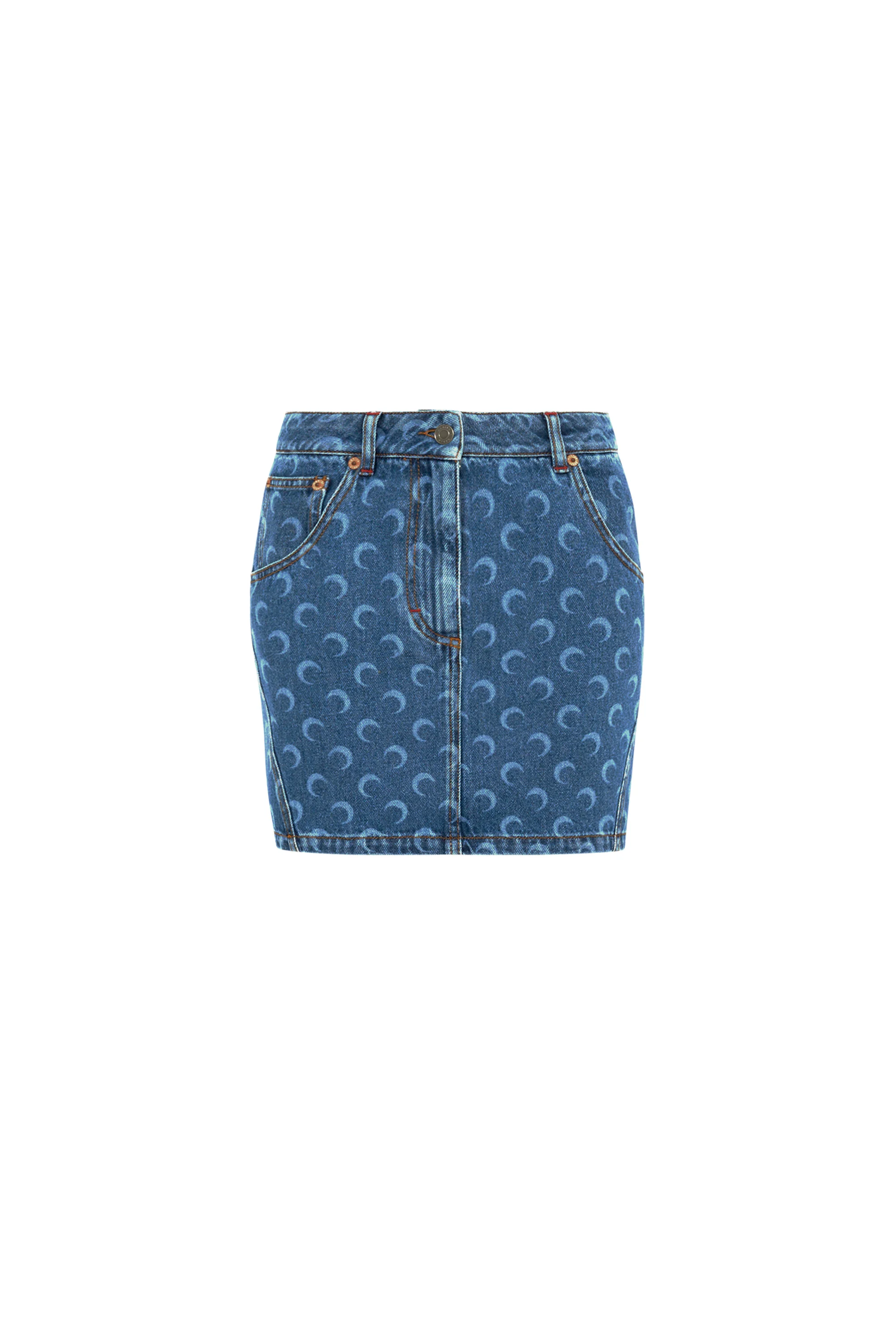- Five pockets - Zipped closure with shank button - Moon allover laser printed denim on front and back panel - Belt loops - Embroidery on back pocket - Jacron with logo on back belt - Logo engraved on button Materials Moon Laser Denim Blue Marine Serre offers a 100% GOTS Certified Organic denim twill family of garments, in addition to a Regenerated one. For this new family of denims, Marine Serre has opted for a light washed classic indigo as well as a striking black variant. 100% Cotton