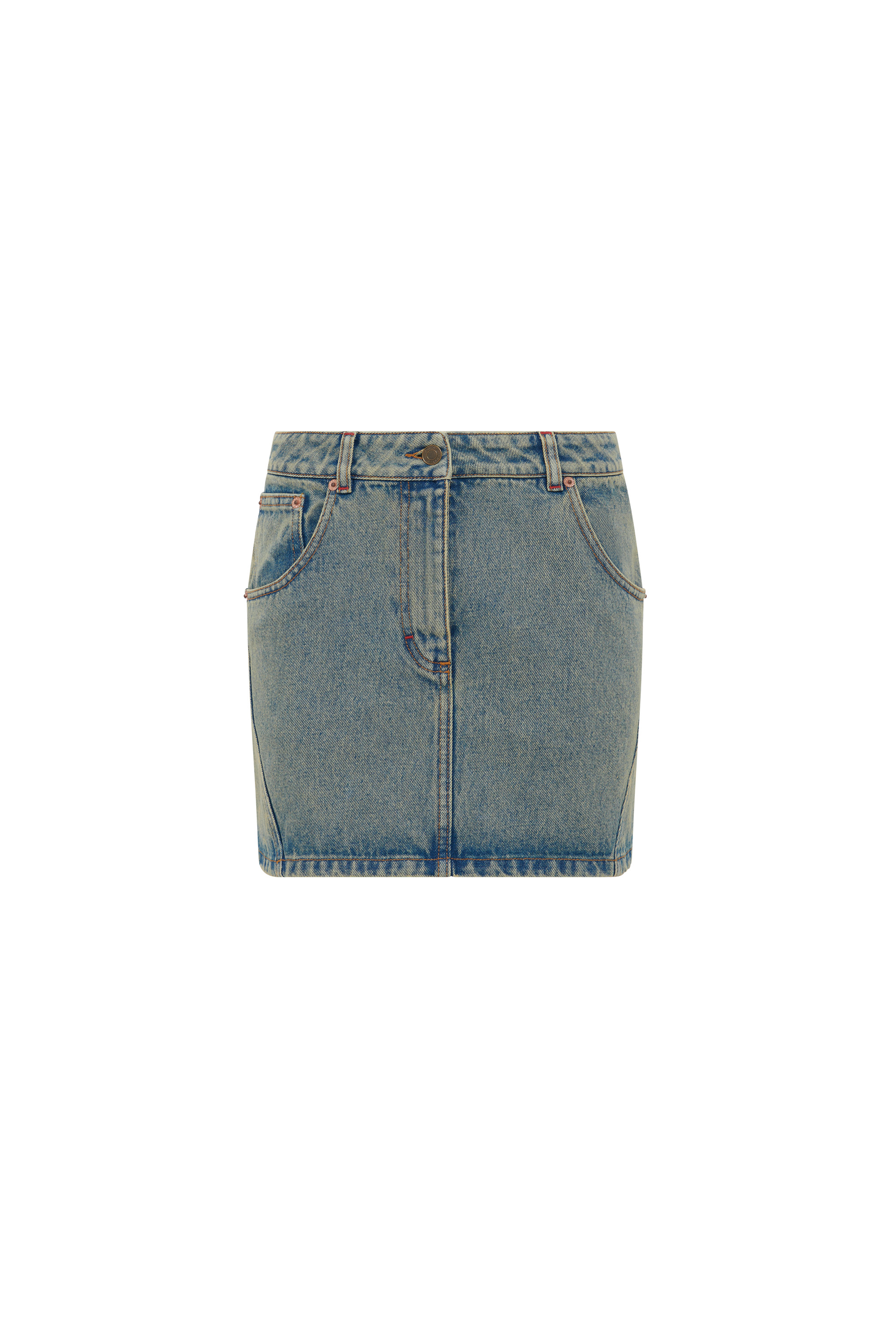 - Five pockets - Zipped closure with a shank button - Belt loops - Embroidery on left back pocket - Branded jacron woven on back waistband - Signature Moon laser printed all over on back panel - Logo engraved on button Materials Moon Laser Denim The appeal of our All Over Moon denim never wanes, with this classic fabric returning again and again. Made from a GOTS-certified organic cotton canvas, our indigo denim is stonewashed to produce a light blue, sand and purple blue shades; the latter is also treated with a pigment spray to achieve a really vibrant gradient effect that fades to a paler purple at the sides of the garment. After stonewashing, the All Over Moon is laser-printed onto the pieces, its placement differing for each. All are finished with red reinforcement stitches, logo-engraved metal buttons, and a Marine Serre jacron back patch. 100% Coton (GOTS Certified)
