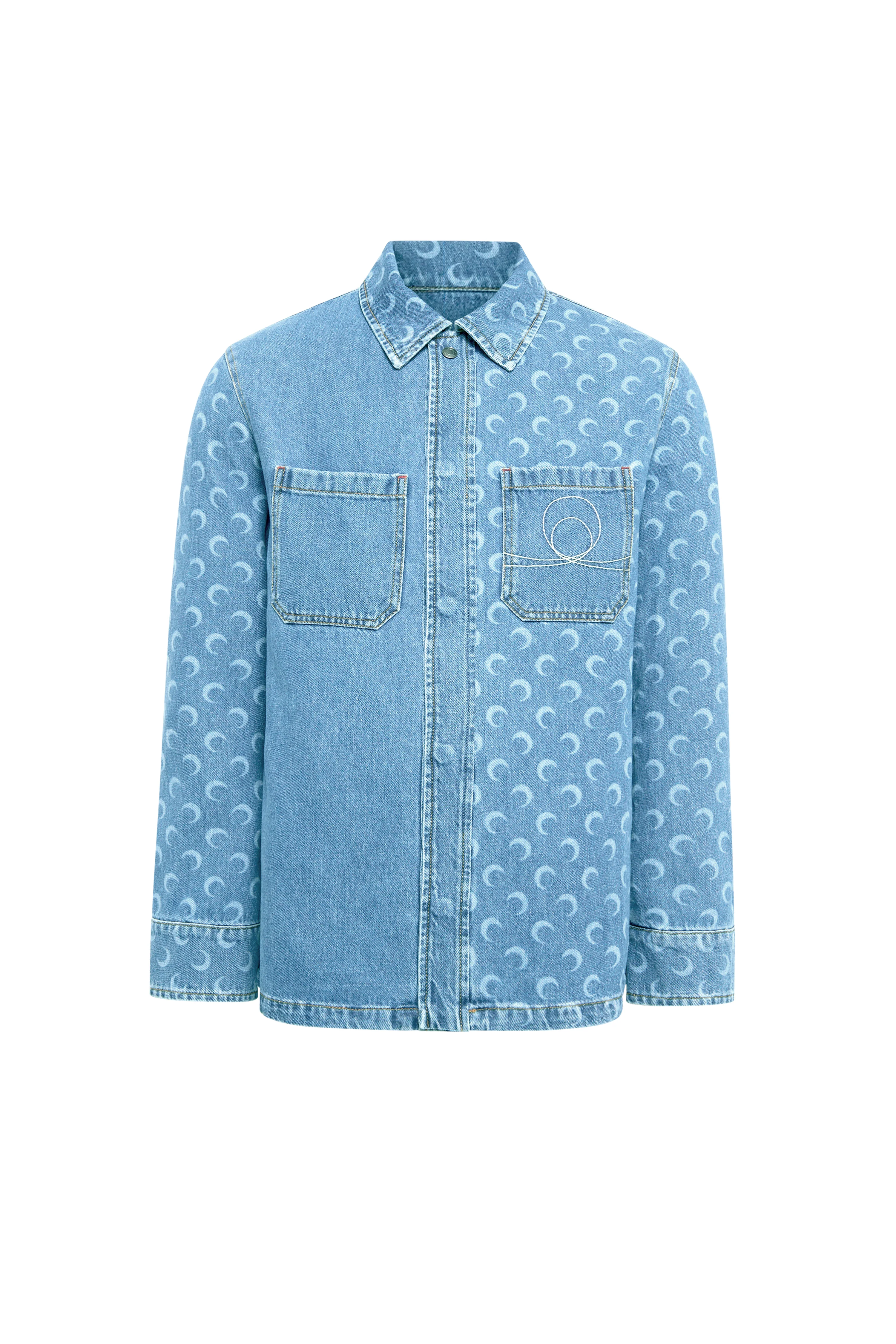 Product Detail - Snap button front closure - Two pockets at chest - Snap button cuffs - Moon allover laser printed denim on left side and back yoke - Embroidery on front left pocket - Jacron with logo in center back