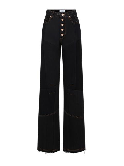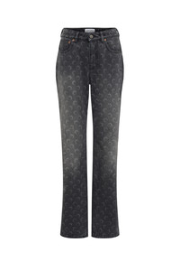 Medium-waisted straight regular length denim pants Product Detail - Zipper and button - Five pockets - Belt loops - Signature moon laser printed all over - Cotton twill on front pockets - Marine serre leather patch Composition and Traceability Product details page relating to environmental qualities or characteristics WPA128B_CDEN0006_GR90_DARK_GREY Composition: Base Material: 100% Cotton Product Care: Do not machine wash Do not bleach Low temperature iron on reverse side Dry clean with precaution Do not tumble dry Traceability: Weaving/Dyeing/Manufacturing: Italy
