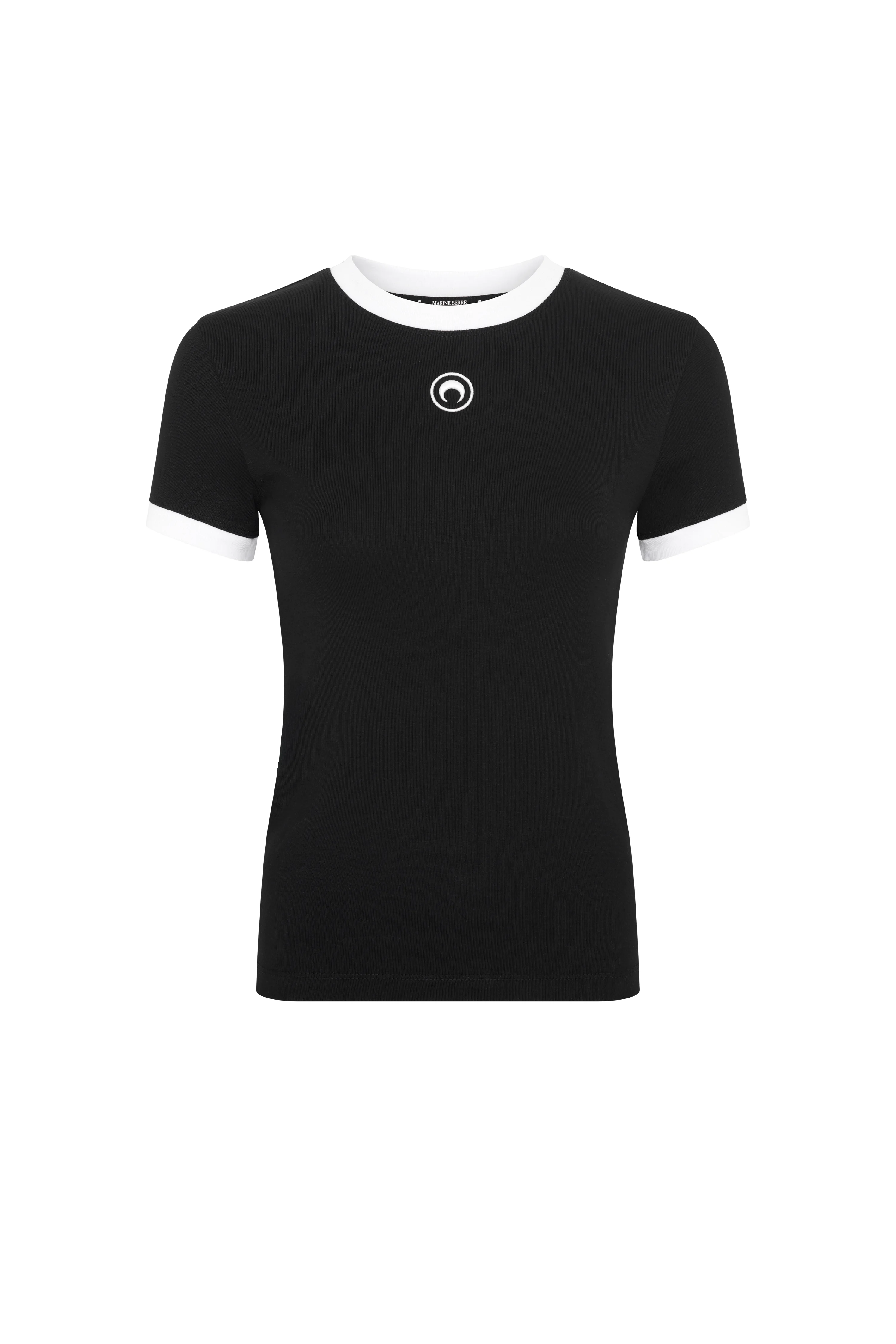 Fitted short length t-shirt with crewneck and short sleeves Product Detail - Contrasted ribbing at the collar - Contrasted ribbing at the sleeve hem - Embroidered moon logo - Branded label woven under neck in back Composition and Traceability Product details page relating to environmental qualities or characteristics UTT010A CJER0008 BK96 BLACK/WHITE Composition: 100% Cotton Product Care: Machine wash 30°C with precaution with the same type of garment (jersey) Do not bleach Low temperature iron on reverse side Dry clean with precaution Do not tumble dry Traceability: Weaving, Dyeing, Manufacturing: Turkey
