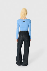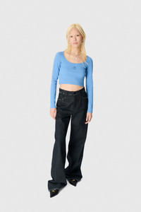 Fitted cropped length t-shirt with roundneck and long sleeves Product Detail - Ribbed neckline - Embroidered moon logo - Branded label woven under neck in back Composition and Traceability Product details page relating to environmental qualities or characteristics WTT033A_CJER0011_BB01_BLUE_BONNET Composition: 100% Cotton Product Care: Machine wash 30°C with precaution with the same type of garment (jersey) Do not bleach Low temperature iron on reverse side Dry clean with precaution Do not tumble dry Traceability: Weaving, Dyeing, Manufacturing: Turkey