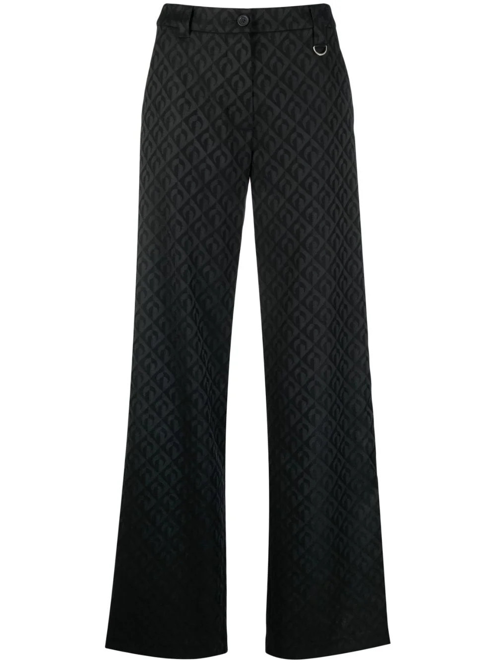 moon-print tailored trousers Marine Serre’s crescent moon motif has become an unmistakable brand hallmark since its debut in 2018. This signature theme appears in a tonal version all over these trousers, adding a signature look to their tailored-style design. Highlights - Black - Wool-blend - Crescent moon print - Belt loops - Concealed front fastening - Two side inset pockets - Wide leg Imported Composition Outer: Recycled Polyester 60%, Wool 28%, Polyamide 12% Lining: Viscose 58%, Cupro 42% SIZE & FIT Model measurements Height 5 ft 9 in(1.76 m) Bust/Chest 31.88 in(81 cm) Hips 35.43 in(90 cm) Waist 24.01 in(61 cm) Washing instructions Dry Clean Only