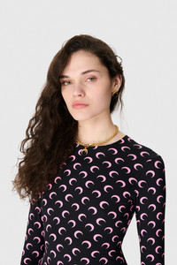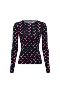 Second skin regular length top with crewneck and long sleeves Product Detail - Reinforced neckline - Cuffs and hem finished with raw edges - All over moon printed Composition and Traceability Product details page relating to environmental qualities or characteristics WTS006A_CJER0001_BK90_BLACK/PINK Composition: 84% Polyamide, 16% Elastane Product Care: Machine wash 30°C Traceability: Weaving/Dyeing/Manufacturing: Portugal