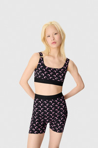 Second skin square neck bra with straps Product Detail - Reinforced neckline - Elasticated hem - All over moon printed Composition and Traceability Product details page relating to environmental qualities or characteristics WUW055B_CJER0001_BK90_BLACK/PINK Composition: 84% Polyamide, 16% Elastane Product Care: Machine wash 30°C Traceability: Weaving, Dyeing: Italy Manufacturing: Portugal