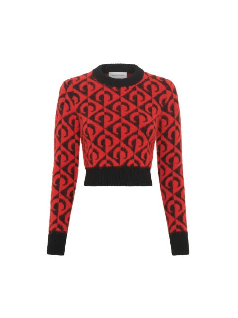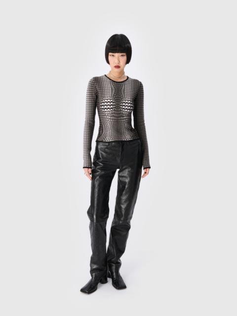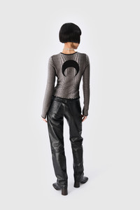 - Trompe l'œil jacquard constructed around the body's curves - Tubular finishing along neck, cuffs, and hem - Black moon knit on center back Materials Moon Skin Jacquard Knit 70% Viscose 30% Polyamides