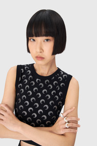 - Signature Moon rhinestoned all over - Ribbed neckline, armholes, and hem Materials MOON STRASS KNIT As it uses the same FSC-certified yarns as our Moon Logo Knit, it benefits from a high degree of breathability and can also be worn directly against the skin. This knit is perfect for an off-season wardrobe — an invitation to the wearer to play with different styling options and, just as is the case with the Borderline offering at large, to layer up with different items from the collection.