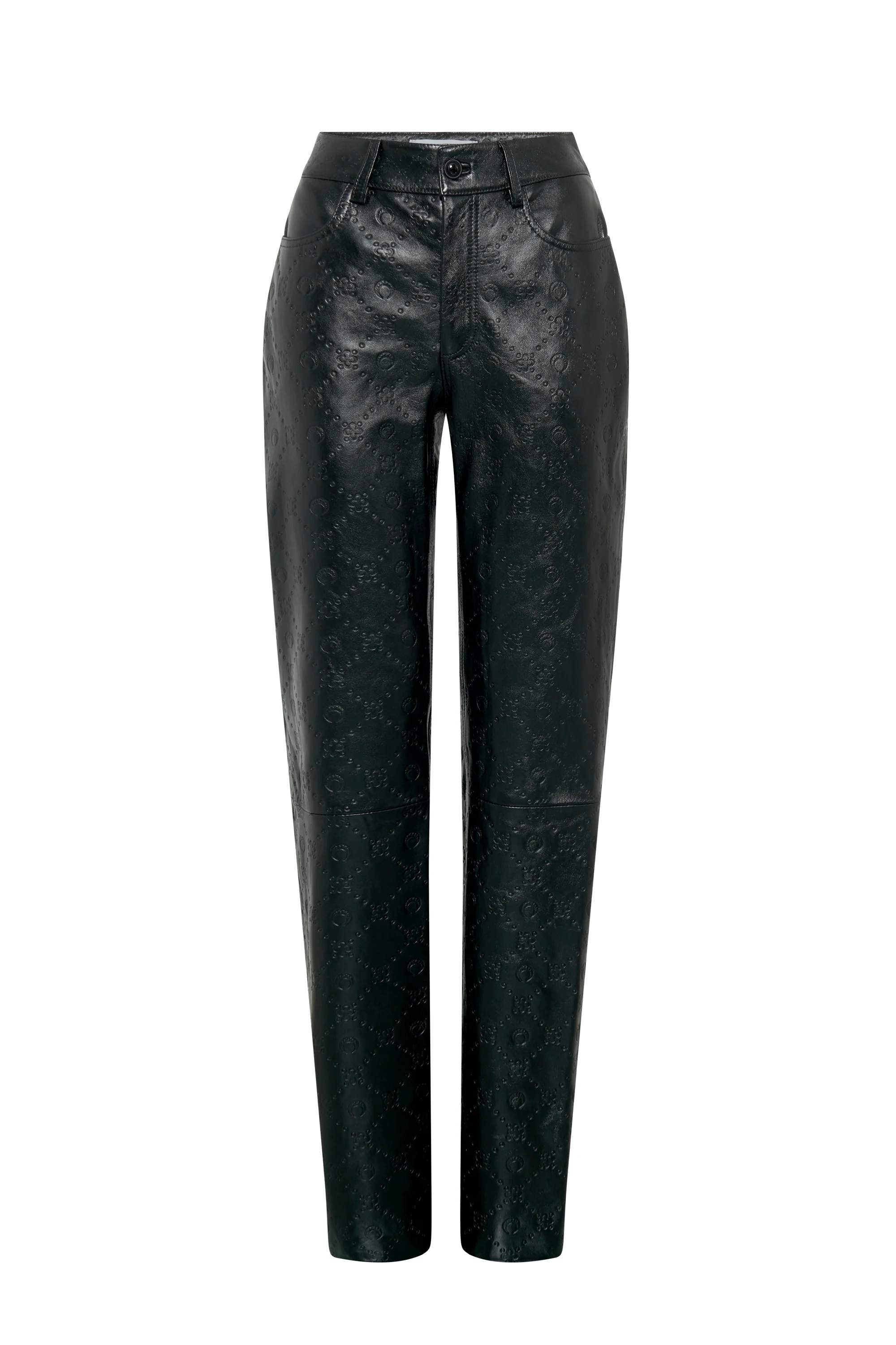 - Two pockets in the front - Two patched pockets in the back - Zipped closure with signature Moon button - Mixed embossed and plain leather construction - Moon jacquard lining - Belt loops - Leather patch with logo on waist in back Materials Moonogram Embossed Leather The Moonogram Embossed Leather represents the most refined pieces offered of the collection and has been a House staple dating back to STATE OF SOUL. It is a soft supple lambskin that has undergone metal-free tanning and has then been embossed with our emblematic Moonogram motif. 100% Lambskin
