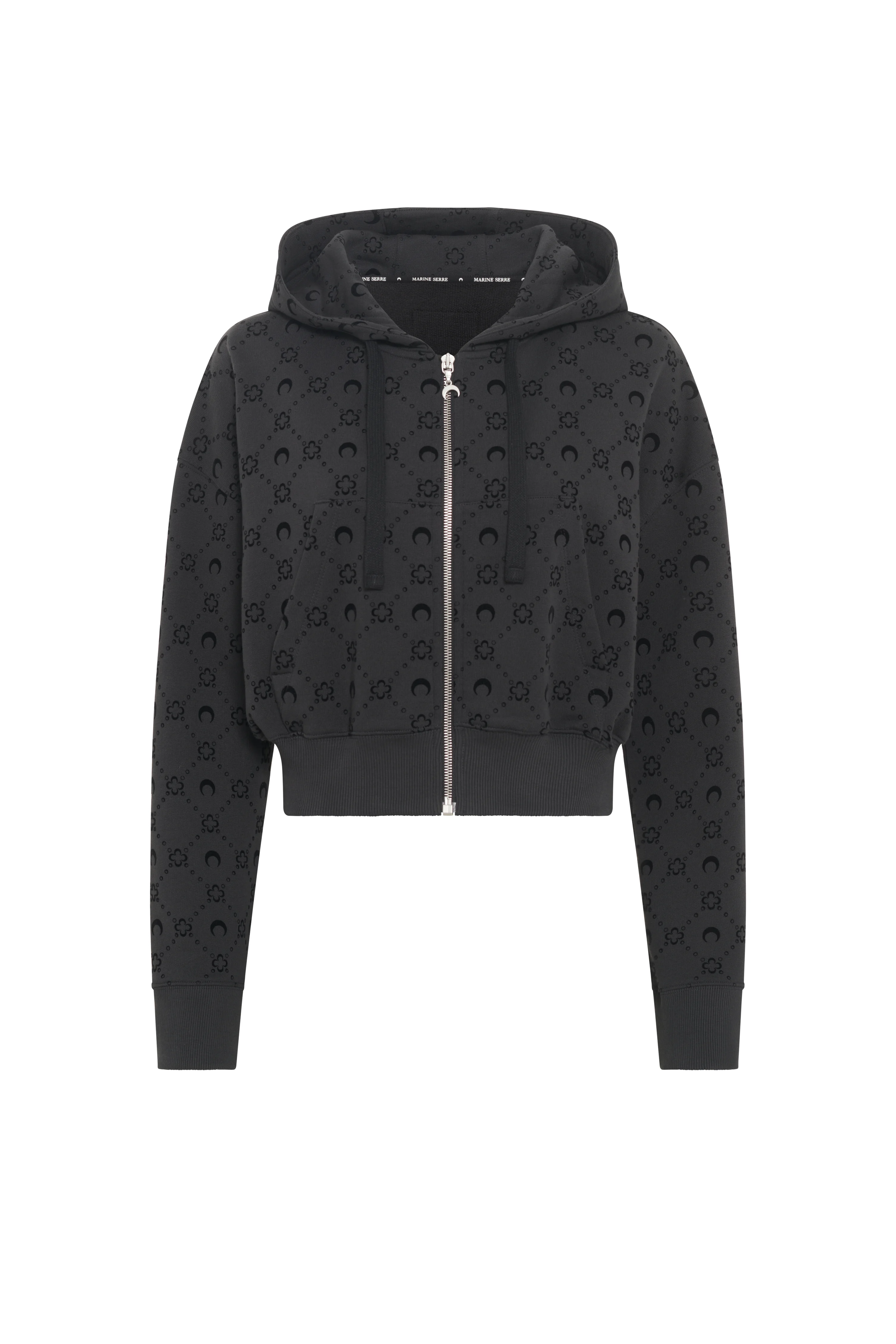 - Three paneled hood - Zipper with signature moon puller - Kangaroo pockets - Ribbed hem and cuffs - Moonogram flocked - Drawstrings with metal aglets Materials Moonogram jersey black