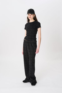 - Soft ribbed jersey fabric with a close, flattering baby fit - All-over flocked Moonogram print for a textured, signature look - Stretch construction for comfort and ease of movement - Crew neckline and short sleeves for a timeless silhouette - Cropped length designed to pair perfectly with high-waisted styles Materials Moonogram jersey black