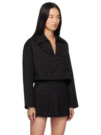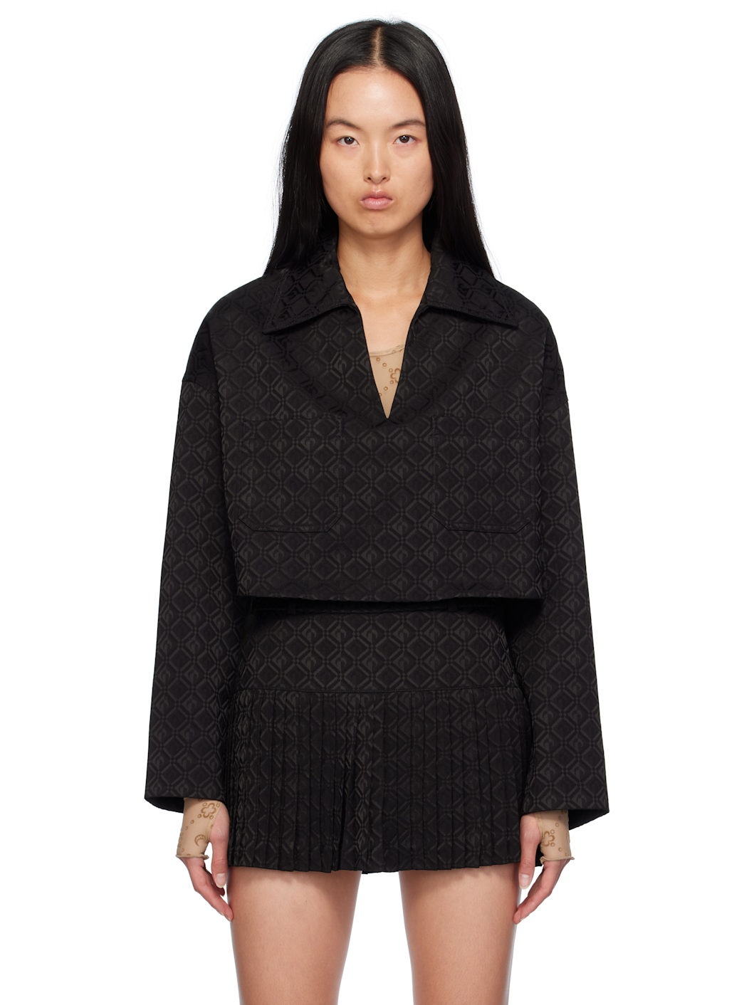 Stretch viscose- and wool-blend twill blouse. Jacquard logo pattern throughout. · Spread collar · Open placket · Patch pockets · Cropped hem · Dropped shoulders · Logo plaque at back collar · Full logo-woven twill lining Supplier color: Black