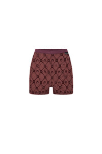 - Elasticated waistband - Moonogram flocked Materials Moonogram Flock Mesh Aubergine The Moonogram motif is flocked with soft velvet on our recycled mesh jersey, creating an incredibly comfortable fabric. The mesh’s transparency calls back to Marine Serre’s transgressive vision by having a material traditionally used solely for lingerie reimagined as day-to-day wear. 86% PA, 14% EA