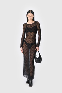 Moonogram Mesh Flock Long Dress