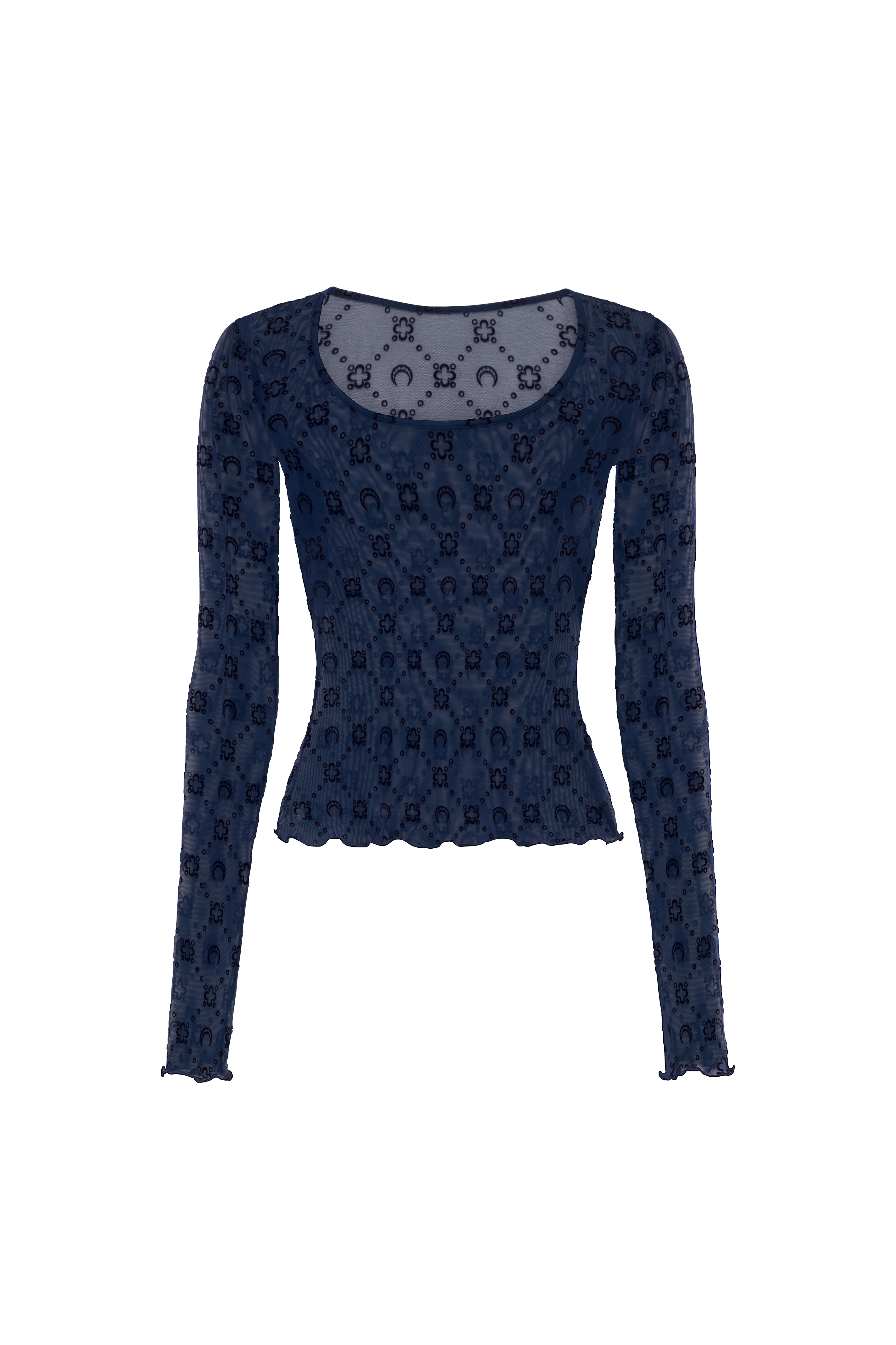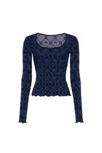 MOONOGRAM MESH FLOCK LONG SLEEVES ROUNDNECK TOP