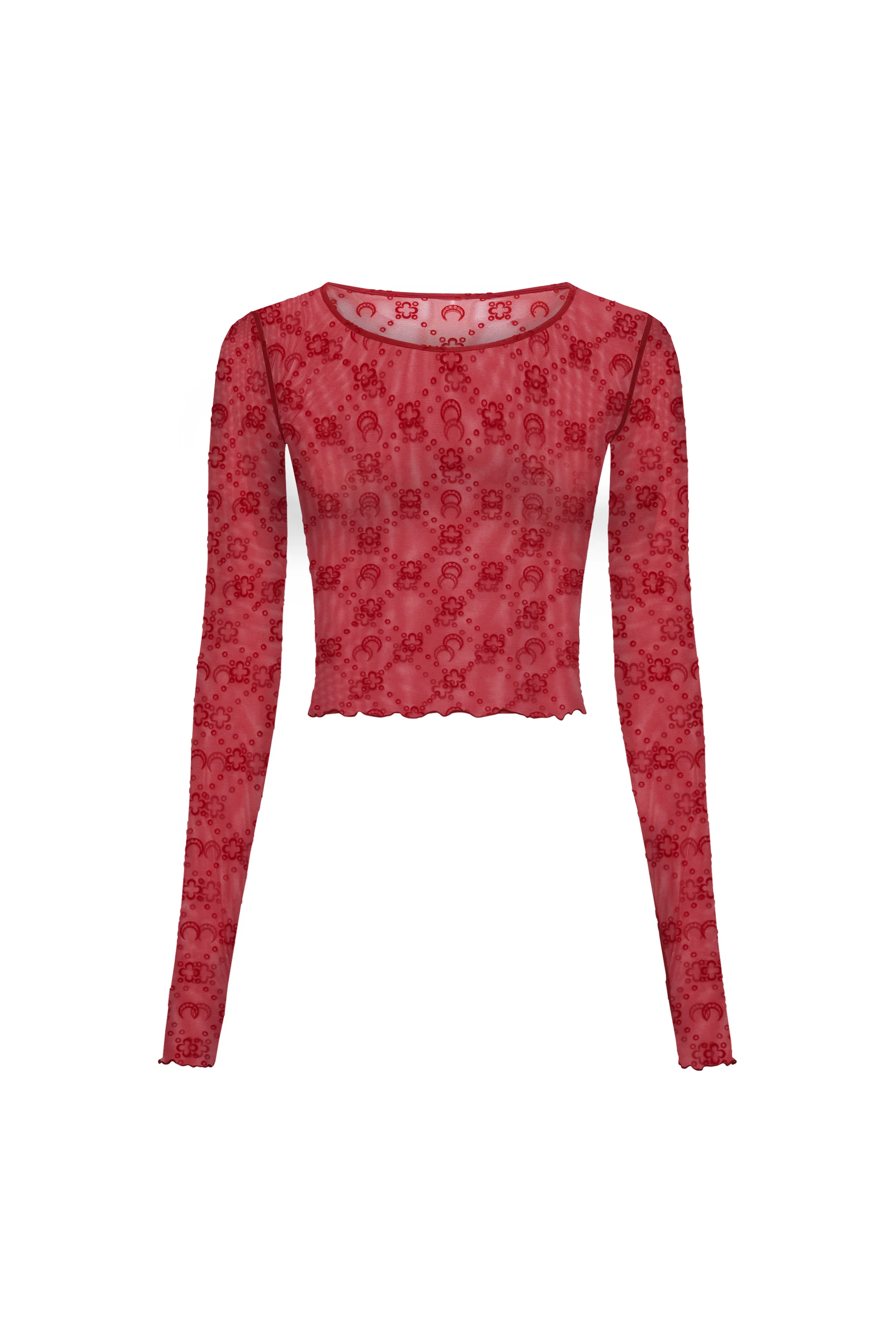 Moonogram Mesh Flock Ls Cropped Top