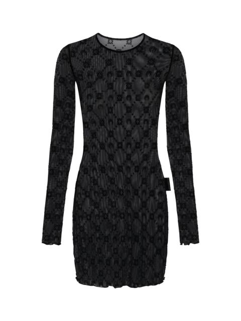 MOONOGRAM MESH FLOCK LS MINI CREWNECK DRESS