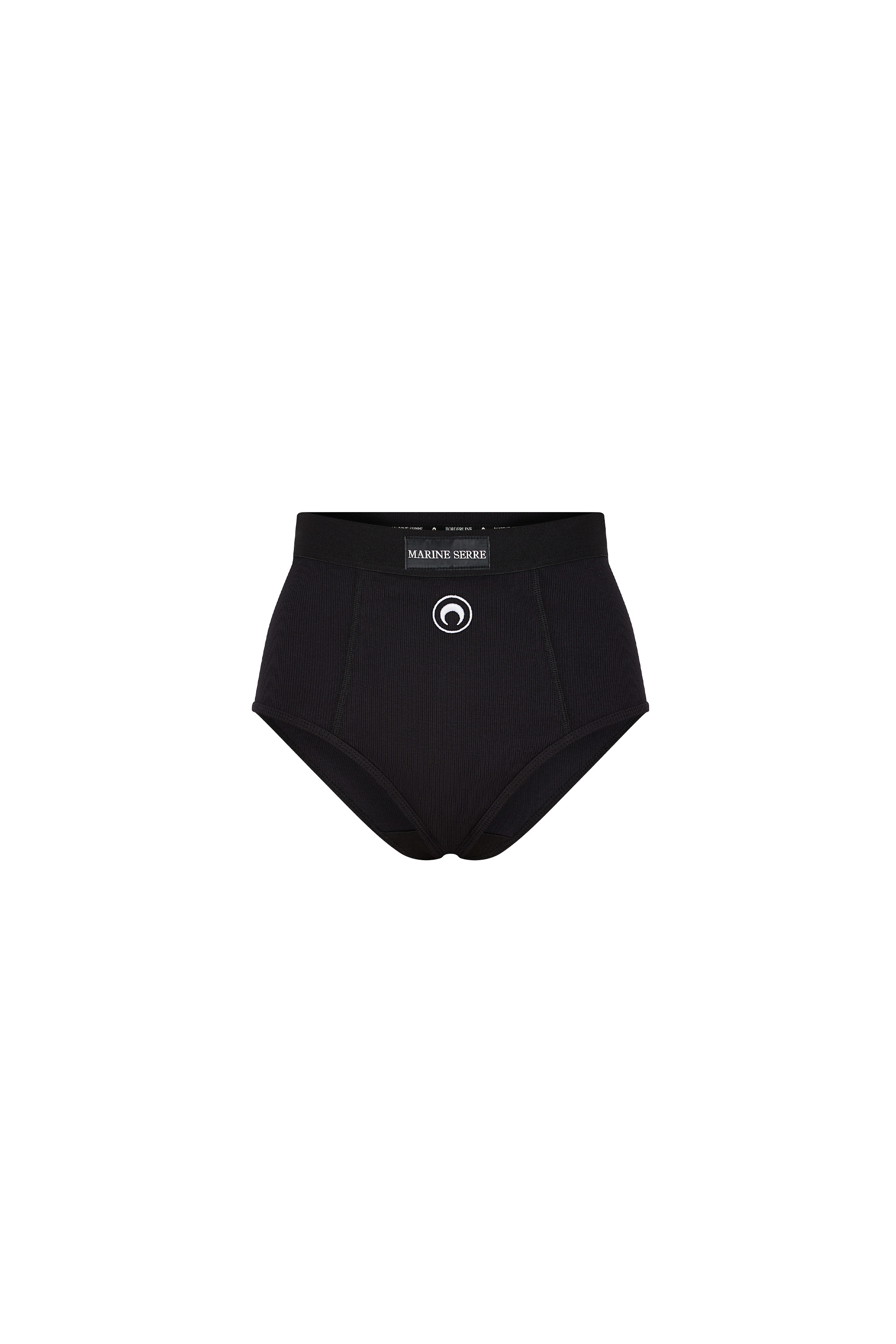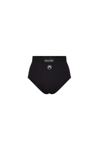These ribbed briefs, crafted from 100% organic cotton, feature a soft yet structured design that supports the natural lines of the body, without the use of aggressive underwires. The signature Moon embroidery on the front and the logo patch enhance their branded look. Materials Black Organic Cotton Marine Serre’s Borderline groups all the essential layering pieces synonymous with the brand. Through a body-conscious approach, these accessible pieces sheathe the body in the shape of second skins or casual t-shirt archetypes. 95% Organic Cotton, 5% Elastane