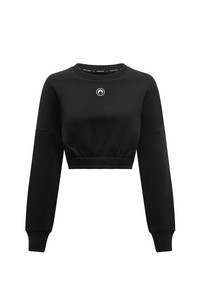 Topstitched ribbed crewneck and cuffs Contrasted white circle Moon logo embroidery placed below the collar in the middle Belt tunnel with inner cord Wide sleeves Materials Black Cotton 100% Cotton