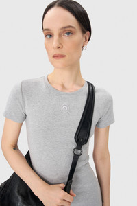 - Ribbed neckline - Moon logo embroidered under neck in front - Branded label woven under neck in back Materials Grey Organic cotton All of the cotton that Marine Serre sources for the BORDERLINE collection is certified GOTS (Global Organic Textile Standard). This certification is the worldwide leading textile processing standard for organic fibers and provides credible assurance of responsible manufacturing with the least chemical inputs. In terms of shapes, the House proposes a wide range of everyday styles taken directly from the sportswear universe. 100% Cotton