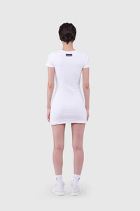 The T-Shirt Mini-Dress features a tight, long fit with short sleeves and a crew ribbed neck for a feminine look. A small crescent moon logo is embroidered on the side of the chest as a recognizable symbol of the brand. Materials White Organic Cotton Marine Serre’s Borderline groups all the essential layering pieces synonymous with the brand. Through a body-conscious approach, these accessible pieces sheathe the body in the shape of second skins or casual t-shirt archetypes. 100% Organic Cotton