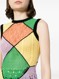 panelled crochet-knit tank top Highlights - Black/multicolour - Cotton blend - Crochet knit - Ribbed knit - Colour-block panelled design - Diamond pattern - Crew neck - Sleeveless - Straight hem Made in Italy Composition Cotton 50%, Acrylic 50% SIZE & FIT Model measurements Height 5 ft 10 in(1.78 m) Bust/Chest 32.67 in(83 cm) Hips 37 in(94 cm) Waist 25.59 in(65 cm) FittingInformation Designed for a slim fit that sits just away from the body offering a close yet comfortable fit Made with a midweight knit, this piece offers some stretch This piece fits true to size – take your usual size