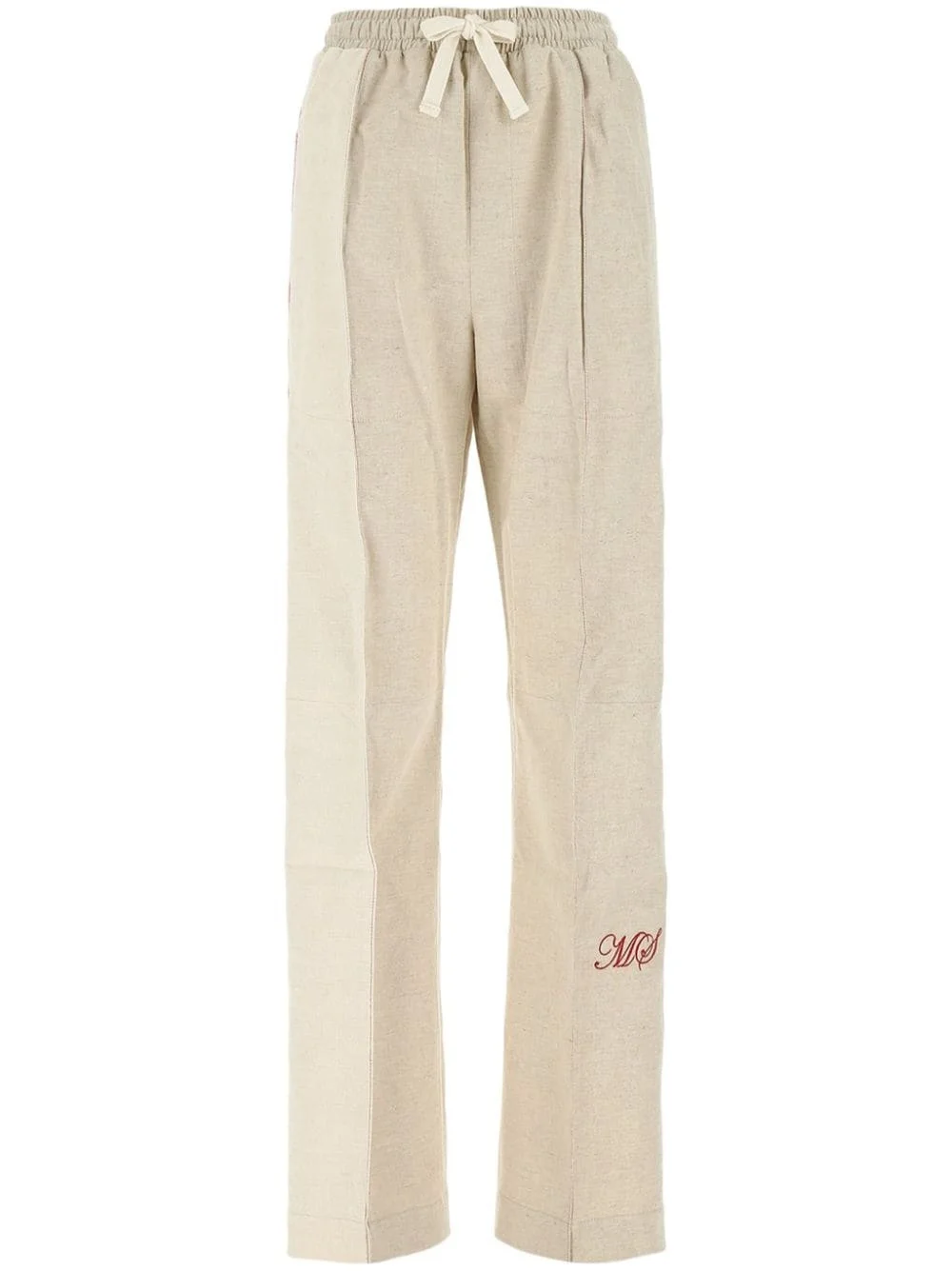 logo-embroidered track pants Highlights - Light beige - Cotton - Melange effect - Elasticated drawstring waistband - Two side slit pockets - Rear patch pocket - Vertical seamed - Embroidered logo at the leg - Straight leg Made in Italy Composition Cotton 100%