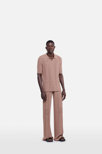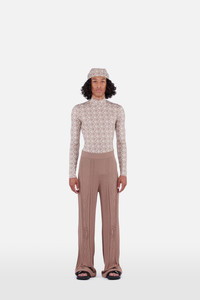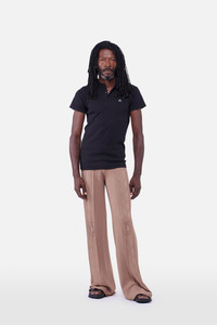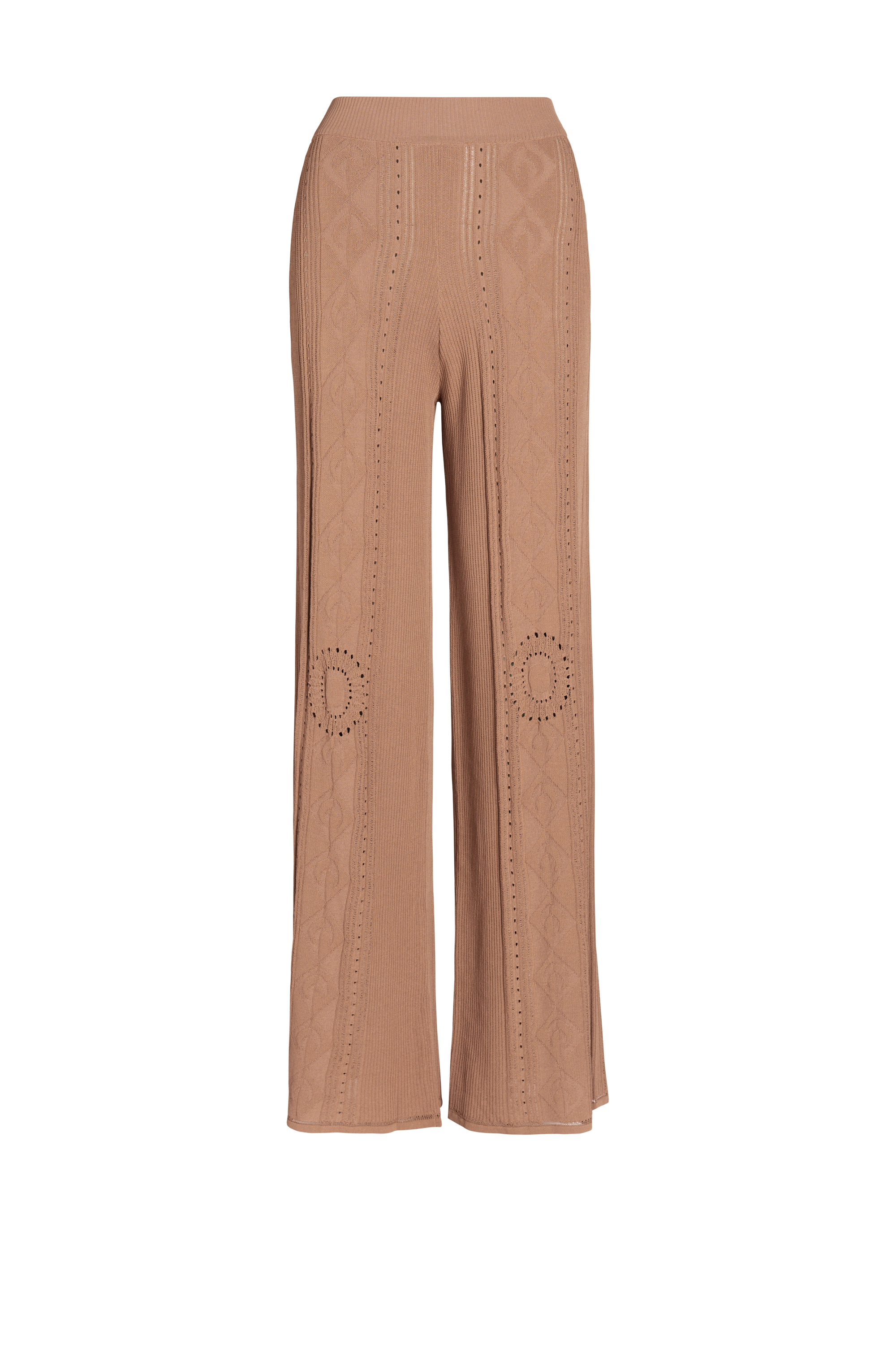 Crafted from an organic cotton blend, these unisex Moon Diamant chunky knit pants feature a comfortable wide-leg design. They boast a high rise and an elasticated waistband. The sun pointelle on both knees reinforce the branded look. Materials Pointelle Knit Beige A new knit technique and quality introduced to Serre’s vocabulary, pointelle, translates the moon and related imagery – the Sun and the stars – into finely-perforated textures. Fitting perfectly into the maison’s approach to logo elevation, this viscose-blend (FSC certified) dry knit embodies an elegant play of qualities. Light, elastic and comfortable – essential sportive qualities – this summer knit takes on very simple shapes to highlight the textile craftmanship. Inspired by the Ying-Yang and the principle of opposites, the whole range is available in tonal black and white options. 75% Viscose 25% Polyamide