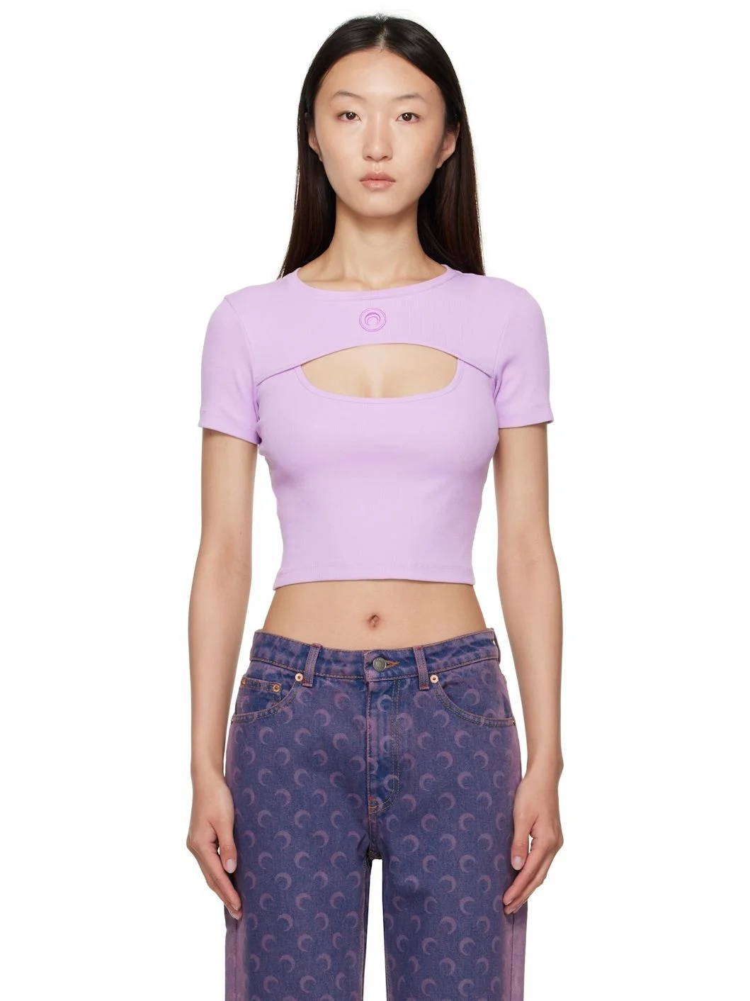 Purple Moon Logo Ribbed Jersey Cut-Out T-shirt