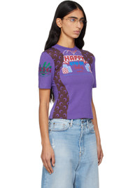 Upcycled cotton jersey T-shirt. · Graphics and logo pattern printed throughout · Paneled construction · Rib-knit crewneck Each item is unique. Please note graphics may vary. Supplier color: Jersey aubergine Body: 100% cotton. Trim: 88% recycled polyamide, 12% recycled elastane. Made in Portugal 252020F110029