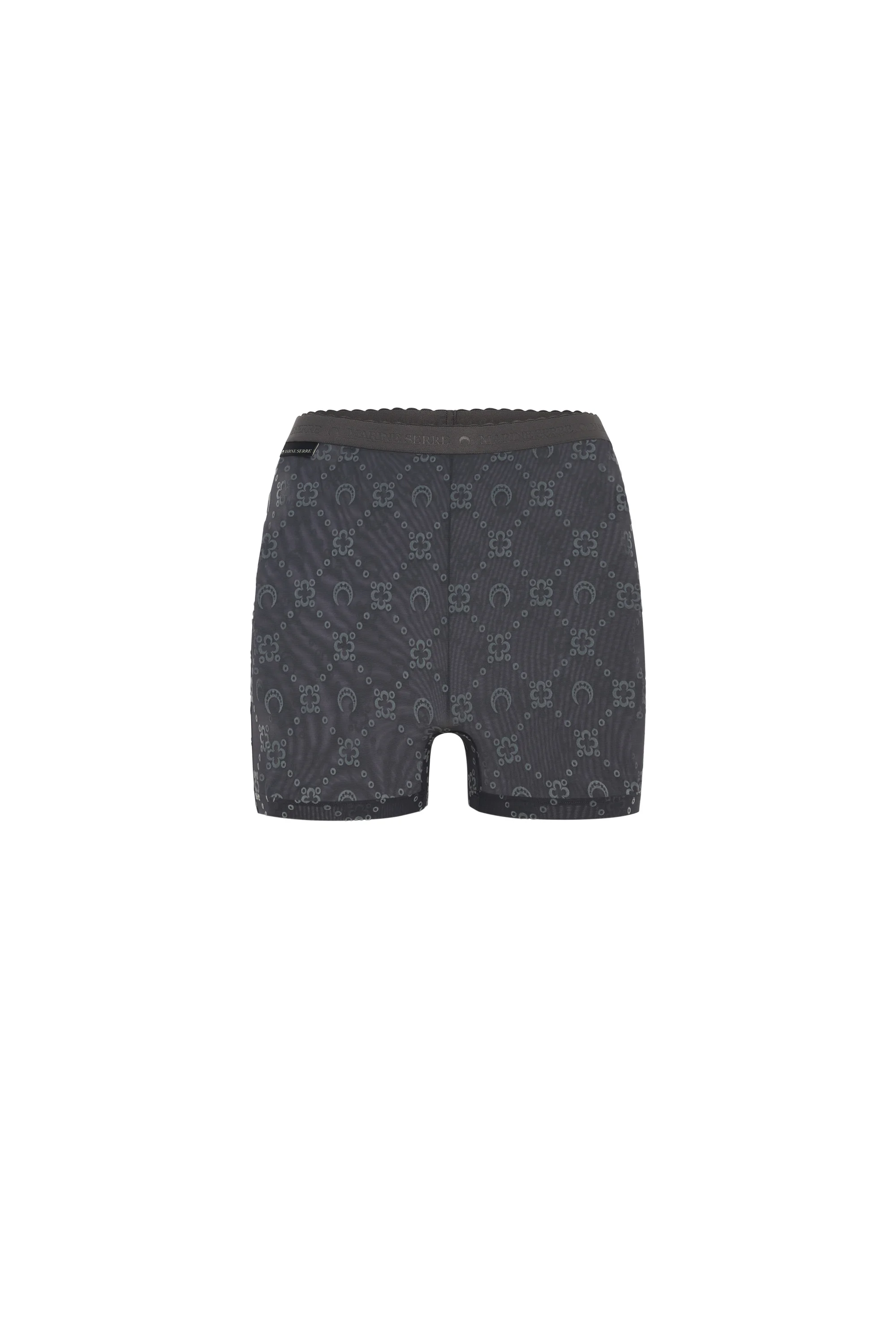 - Elastic waistband - Moonogram flock allover - Logo stamped on waistband - Label with logo on front left below elasticated waistband Materials Moonogram Mesh Flock Stone Grey The Moonogram motif is flocked with soft velvet on our recycled mesh jersey, creating an incredibly comfortable fabric. The mesh’s transparency calls back to Marine Serre’s transgressive vision by having a material traditionally used solely for lingerie reimagined as day-to-day wear. 86% Polyamide - Recycled (GRS Certified), 14% Elastane