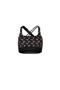 Second-skin sports bra with shoulder straps Product Detail - Elastic hem - Reinforced construction - Moon print allover - Logo stamped on elastic hem Composition and Traceability Product details page relating to environmental qualities or characteristics WUW055A CJER0001 IT99 INVERSE TAN Composition: 86% Polyamide, 14% Elastane Recycled material: 86% (Polyamide) Releases plastic microfibers into the environment when washing Traceability: Weaving, Dyeing, Manufacturing: Italy
