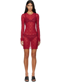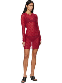 Sheer stretch recycled nylon mesh minidress · Flocked logo pattern printed throughout · Crewneck · Lettuce edge trim at hem and cuffs Supplier color: Ribbon red 86% recycled polyamide, 14% elastane. Made in France 252020F052003