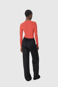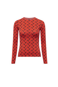 - Signature Moon printed all over - Reinforced neckline - Cuffs and hem finished with raw edges Materials JERSEY ALL OVER MOON BLACK ON RED The All Over Moon print is the banner of the House, it represents the house’s virtues and vision of Futurewear, ever present since the very beginning of the House for RADICAL CALL FOR LOVE. Indeed, what is perhaps the House’s most popular line holds its values at heart with a jersey composed entirely of recycled material. 88% Polyamide (GRS Certified) - Recycled, 12% Elastane