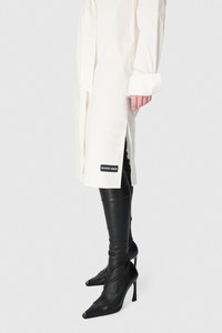 - Buttoned front - Set-in sleeves with back openings - Back belt detail in matching fabric - Marine Serre patch - Convertible open sleeves that can be fastened at the chest Materials WHITE PLAIN PERCALE 100% COTTON