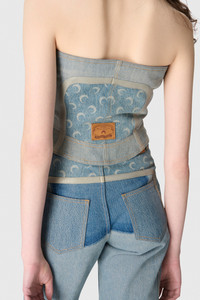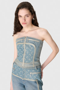 Classic sleeveless bustier top with short length Product Detail - Zipper with signature moon puller - Two zipped pockets on the chest - Signature moon laser on yokes - Marine serre leather patch Composition and Traceability Product details page relating to environmental qualities or characteristics WTO460A_UDEN0012_BG01_LIGHT_SAND Composition: Main fabric - 100% cotton, Second fabric - 100% cotton Third fabric - 100% lamb leather, Lining - 100% cotton Product Care: Professional leather cleaning only Traceability: Weaving/Dyeing: Italy Manufacturing: France