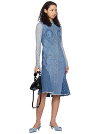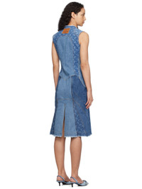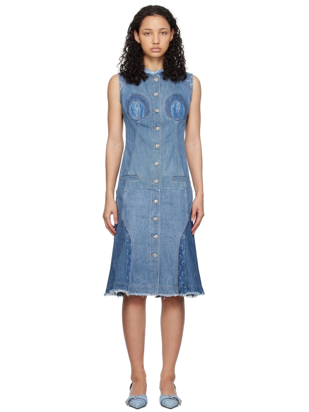 Non-stretch denim and stretch denim dress. Fading and logo pattern throughout. · Paneled construction · Frayed edge at crewneck and hem · Button closure · Logo applique at padded cups · Welt pockets · Godet panels at flared hem · Leather logo patch at back collar · Central vent at back hem · Logo-engraved silver-tone hardware · Contrast stitching in tan Part of the Gold Line collection. Supplier color: Navy Body 1: 100% cotton. Body 2: 98% cotton, 2% elastane. Lining: 100% cotton. Made in Portugal 241020F054001