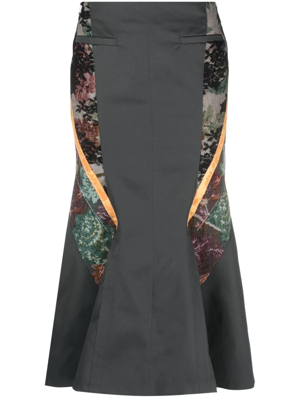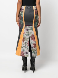 Regenerated Floral Tapestries flared skirt Upcycled garments are cornerstones of Marine Serre’s output and make up the Regenerated line. This midi skirt is a prime example as it arrives in a panelled design with floral jacquard detailing. The flared cut provides a charming sense of volume to the look. Highlights - Grey/multicolour - Cotton - Panelled design - Jacquard - Floral motif - Two front welt pockets - Logo patch to the rear - Flared design - Rear slit - Calf-length Made in Italy Composition Outer: Cotton 100%, Polyester 100%, Rayon 60%, Polyamide 35%, Spandex/Elastane 5% Lining: Viscose 100% SIZE & FIT Model measurements Height 5 ft 10 in(1.77 m) Bust/Chest 31.88 in(81 cm) Hips 36.22 in(92 cm) Waist 24.01 in(61 cm) FittingInformation This midi-length skirt is intended to be worn low on the hips Made from a midweight non-stretch fabric This piece fits true to size – take your usual size Washing instructions Dry Clean Only