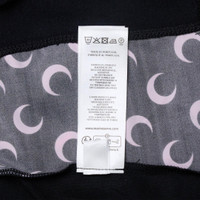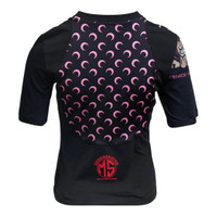 600075736BLK00M / WTT001B/UJER0003/BK85 - Regenerated jersey fabric construction - Baby fit silhouette - Crew neckline - Short sleeves - Allover graphic print with crescent moons - Sustainable upcycled materials Marine Serre Regenerated Graphic Jersey Baby Fit T-Shirt delivers sustainable streetwear with the brand's signature upcycled aesthetic. Crafted from regenerated jersey fabric in black, featuring bold graphic prints including pink crescent moon motifs and vintage-inspired artwork. The fitted baby silhouette and sustainable construction showcase Marine Serre's commitment to circular fashion and innovative design.