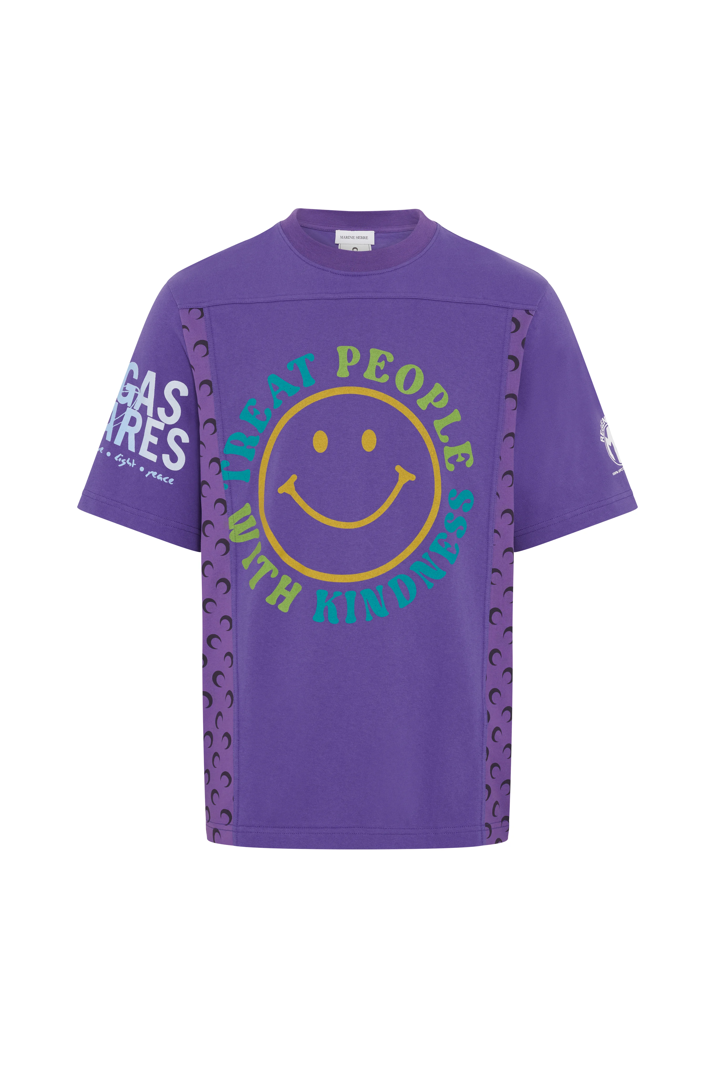 Classic crewneck short sleeves t-shirt with regular length Product Detail - Ribbed neckline - Printed ms regenerated logo - Upcycled t-shirts patchwork construction - Signature moon printed jersey cutouts on sides Composition and Traceability Product details page relating to environmental qualities or characteristics MTT093AUJER0003 | UJER0003 | PU50 PURPLE Composition: 100% CO - SecondaryFabric: 100% CO Traceability: Weaving, Dyeing, Manufacturing: Portugal