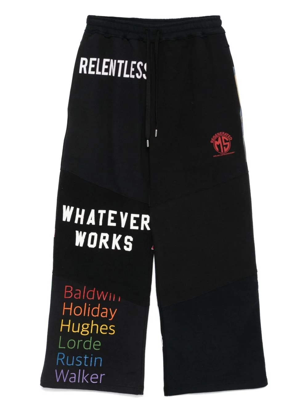 Regenerated graphic track pants Highlights - Black - Elasticated drawstring waistband - Two side inset pockets - When buying this unisex item, keep in mind that it is graded in standard men's sizing. - This product is crafted from upcycled materials so the one you receive may differ slightly from the item pictured. Imported Composition Cotton 50%, Polyester 50%