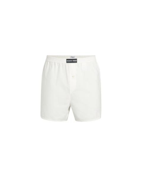 Elastic waist Lace band topstitched on sides MARINE SERRE branded label on waist above fly Topstiched finishing Materials Pillowcase Linen White This extraordinary fabric is part of the core materials of the House. The forgotten techniques of the upcycled embroidered pillowcases are saved from oblivion and regenerated into unique, transcending garments evoking soft, delicate and sensual imagery. All these one-of-a-kind pieces are filled with history through their embroideries, all smoothly placed to highlight the beauty of this rare fabric. The white tones of the pillowcases are also dyed in black to play with the ceremonial references. 100% Cotton