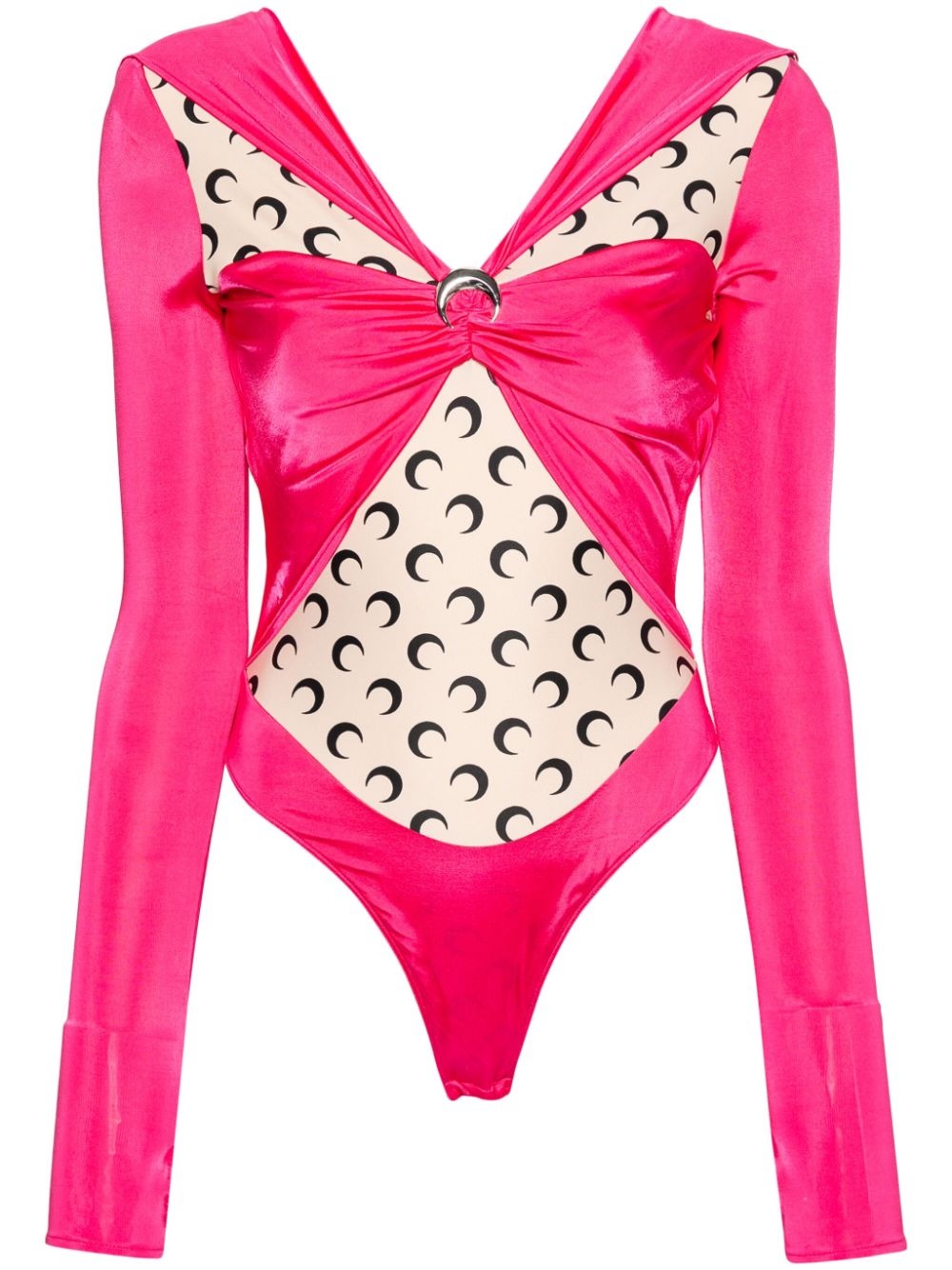 crescent moon-print blouse Highlights - Fuchsia pink - Sand beige - Stretch-design - Draped detailing - Ruched detailing - Colour-block design - Crescent moon print - V-neck - Long sleeves - Silver-tone logo plaque - Press-stud fastening Imported Composition Viscose 95%, Elastane 5% SIZE & FIT Model measurements Height 5 ft 9 in(1.76 m) Bust/Chest 32.28 in(82 cm) Hips 35.03 in(89 cm) Waist 24.8 in(63 cm) FittingInformation Designed for a close fit throughout Made from a midweight stretch fabric, this piece offers elasticity and flexibility when worn This piece fits true to size – take your usual size
