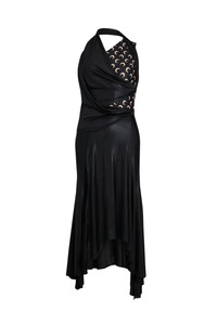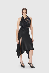 Asymmetric neckline Asymmetric hem All Over Moon draping along Inner breast and back Materials Black Jersey Drapped 100% polyester All Over Moon Jersey Tan Marine Serre’s Borderline groups all the essential layering pieces synonymous with the brand. Through a body-conscious approach, these accessible pieces sheathe the body in the shape of second skins or casual t-shirt archetypes. 88% Recycled Polyamide, 12% Recycled Elastane