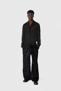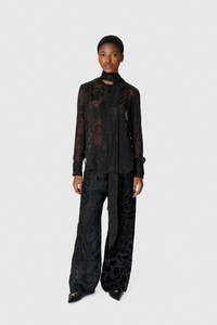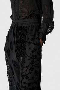 Low-waisted straight long-length casual pants Product Detail - Tied with a drawstring - Two italian pockets - Elasticated waistband - Woven logo label Composition and Traceability Product details page relating to environmental qualities or characteristics UPA054A UWOV0056 BK99 BLACK Composition: Main Fabric: 70% Silk , 30% Viscose - Lining: 100% Polyester Traceability: Weaving, Dyeing, Manufacturing: France