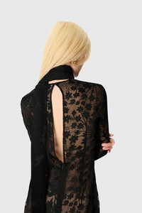 - Tie-neck collar - Snap buttons - Set-in sleeve Materials SILK SCARVES RASO 50% SILK 50% ACETATE