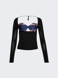Details - Fitted twisted top with an open neck and back - Regenerated silk scarf twisted into a bralette - Self fabric tie in back - Extra long sleeves - Turned hem - Model is 5'9"/175cm and is wearing a size S - Material: 92% Viscose, 8% Elastane; 100% Silk Brand Style: WTO427A UWOV0028 Designer/Brand: MARINE SERRE