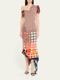 Marine Serre regenerated scarf dress layers a sheer outer shell over an interior draped scarf silhouette Round neckline Short sleeves Hem hits below the knee Fitted silhouette Asymmetric hem Nylon/polyamide/elastane Made in France Online Inquiries: BGS21_B9NA4| Store Inquiries: #4921981